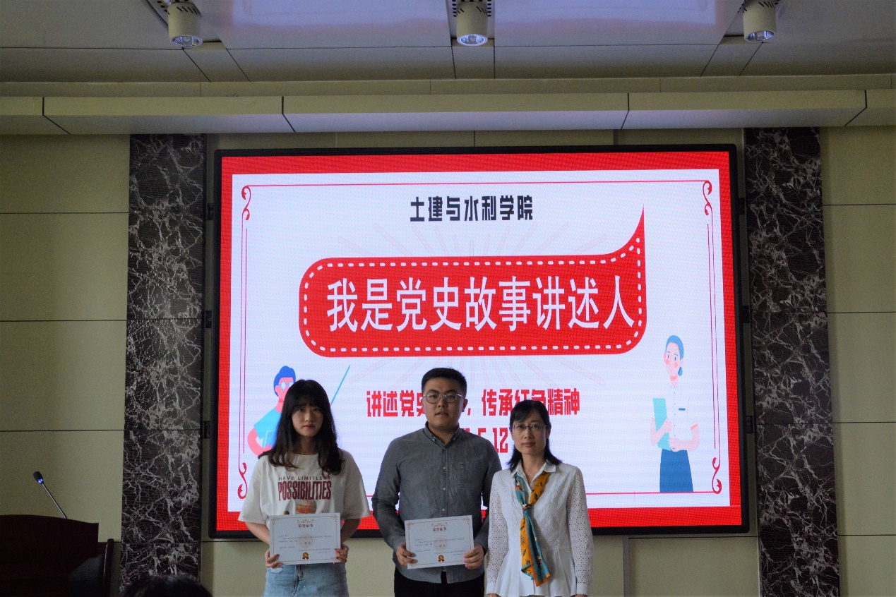 选手演讲结束后,辛帅对本次比赛进行点评。她对19名参赛选手的精彩讲述表示高度的赞扬,肯定了本次比赛的意义。她表示,作为党员及入党积极分子要利用全国从上而下的党史学习教育,积极学习党史知识,提高自己理论素养,以党员标准要求自己,给其他同学树立榜样。经过激烈角逐,本次比赛,储燕、韩翔荣获一等奖,齐萌、刘洋、侯颖雪荣获二等奖,夏弘、杨惠茗、杨浩、范清涵荣获三等奖。辛帅、范方、张瑜分别为一、二、三等奖的同学颁发奖状,最后选手和老师合影留念。
