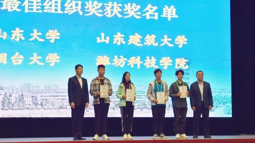 荣获“最佳组织奖”。本次山东省大学生结构设计竞赛为学生联系专业知识与实际应用提供了良好契机,极大地提高了学生动手实践与创新协作能力,促进了高校学生之间的沟通与联系,增强了学生专业兴趣,提升了学生专业素养。
