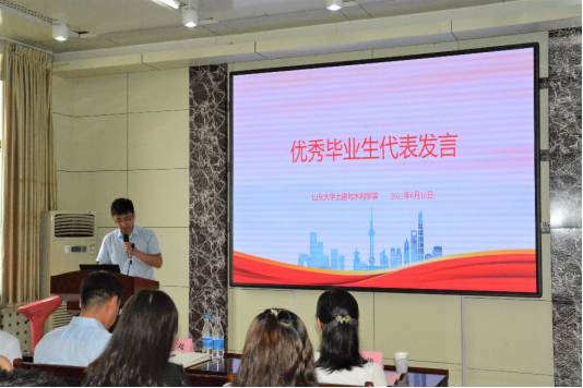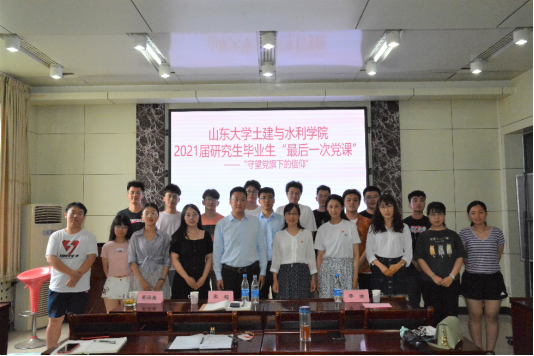 党课最后,辛帅代表学院祝贺各位毕业生顺利完成学业,并给毕业生几点期望和建议:一要坚定政治立场,提高政治站位。不忘初心、牢记使命,为实现中华民族伟大复兴的中国梦奉献自己的力量。二要厚植家国情怀。将个人发展和国家命运紧密联系在一起,把人生理想融入到国家和民族的事业中,对于出国深造的同学,更要时刻关注国家发展,学成后报效祖国。三要志存高远脚踏实地。保持拼搏进取的精神,做到自信、自立、自强,用自己双手创造美好未来。四要保持共产党员的先进性。有坚定的理想信念,强烈的责任心,吃苦在前,享受在后,充分发挥先锋模范作用。最后,她祝愿各位毕业生万事顺遂,事业有成,家庭幸福,前程似锦。