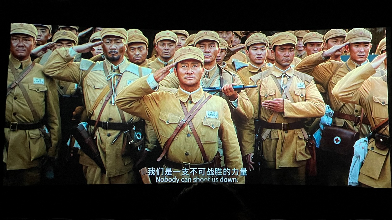 影片中多处情节几度催人泪下,但指导员梅生这句“如果这场仗我们不打,我们的下一代就要打”最让人印象深刻,更让我们明白那一代的人吃尽了5代人的苦才为新中国争取了70多年的和平时间。影片全程以严肃而真实的场景还原了抗美援朝战争的残酷激烈。中国人民志愿军在极其恶劣的环境下奋勇杀敌,却从未退缩,他们凭借着自己刚强的意志力与毅力,为长津湖战役的胜利做出了不可磨灭的贡献。在中华人民共和国成立伊始,我们武装力量薄弱,连一只空军都没有,但面对武装到牙齿的美军力量,中国人民志愿军们也丝毫不畏惧,一路披荆斩棘、前赴后继、保家卫国只为为我们下一代可以过上和平美好的生活。观影后,孙怀凤老师与学生党员交流观后感,尽管长津湖战役的背景有所了解,敌我悬殊以及志愿军的困难程度也略知一二,但电影现场情形还是深深震撼了我!“我们做学问、搞科研也要向英雄前辈学习,只要意志坚定,不怕苦,没有什么困难难得住我们!尽管我们在初入科研时基础薄弱,面对晦涩难懂的公式和编程也时常无从下手,但是只要不怕困难、肯干、肯打,就一定可以战胜它。”