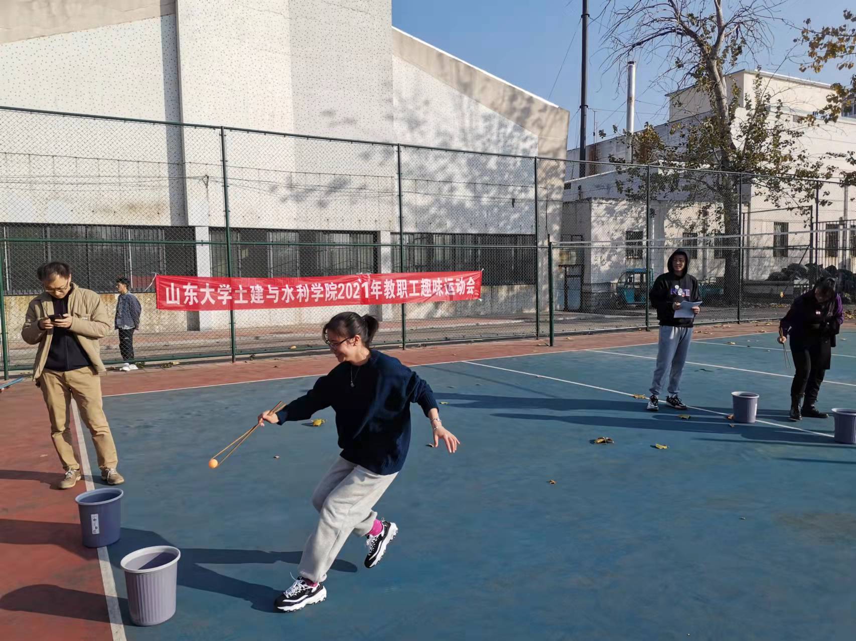 教工趣味运动会是bilibili 工会传统项目,本次运动会共设个人项目5项为飞镖、一分钟踢毽子、一分钟跳绳、夹乒乓球和套圈;团体项目2项为跳大绳和赶球跑。比赛场上大家精神抖擞、敢比敢拼,不断挑战自我。多数项目趣味性强,比赛氛围轻松热烈。经过激烈的角逐,在个人项目中机关工会张军获得了一分钟跳绳项目冠军,水利工会刘士亮获得了夹乒乓球项目冠军,机关工会姜海鹰获得了飞镖项目冠军,土木工会姜丽荣和机关工会张军、石昊、张运国4人获得了套圈项目冠军,土木工会姜丽荣获得了踢毽子项目冠军;团体赛中机关工会获得了跳大绳项目冠军,水利工会获得了赶球跑项目冠军。