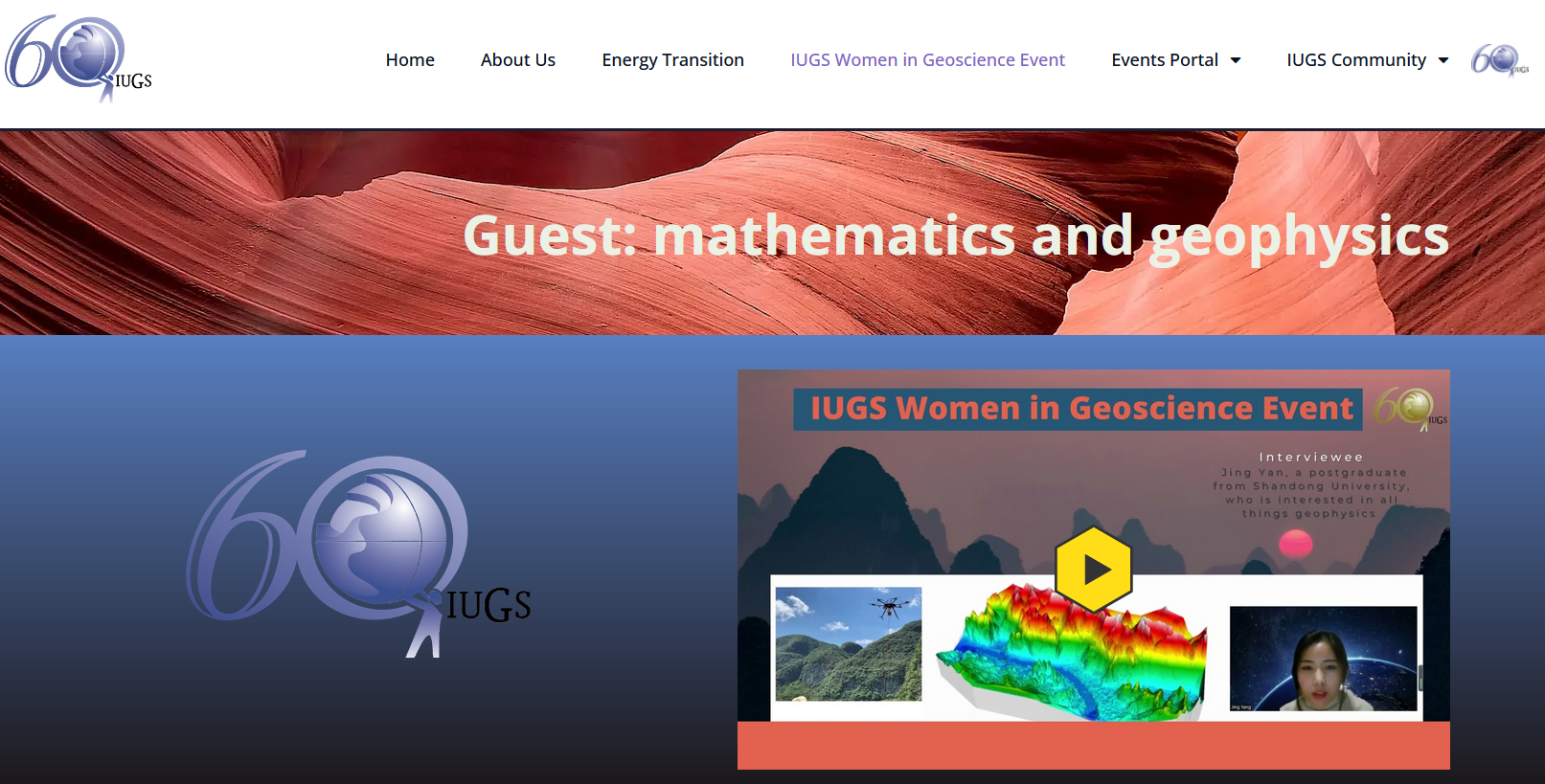 2019级硕士研究生、岩土中心孙怀凤教授课题组成员杨静作为地球物理与数学领域的代表参加了女性科学家访谈活动。该活动是IUGS成立60周年系列活动之一,也是IUGS支持2月11日联合国科学界女性国际日(UN International Day of Women and Girls in Science)和3月8日国际妇女节(International Women’s Day)的专题活动。