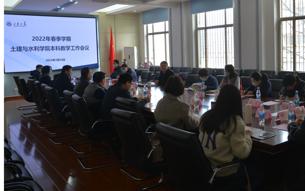 在水利楼第一会议室召开2022年春季本科教育工作会议,部署新学期本科教育工作安排,研讨教学与教改过程中存在的问题。本科生院副院长王立祥受邀出席会议;学院院长张庆松、副书记张强、副院长王培军、副院长毛德强,及各系书记、系主任、教指委委员、教学督导员、院教务秘书、系教学秘书、本科生辅导员等参加会议。