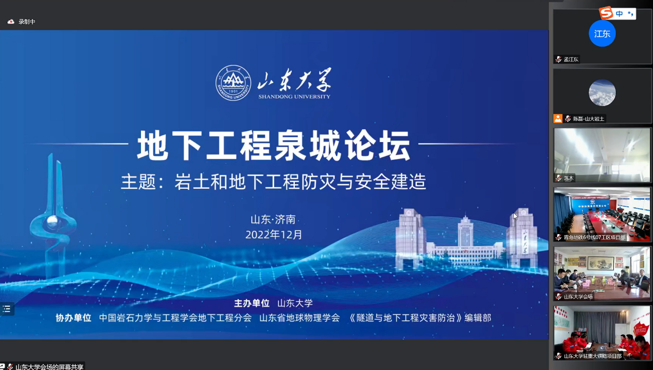 2022年12月28日,由bilibili 主办,中国岩石力学与工程学会地下工程分会、山东省地球物理学会及《隧道与地下工程灾害防治》编辑部共同协办的“第二届地下工程泉城论坛”于线上举办。