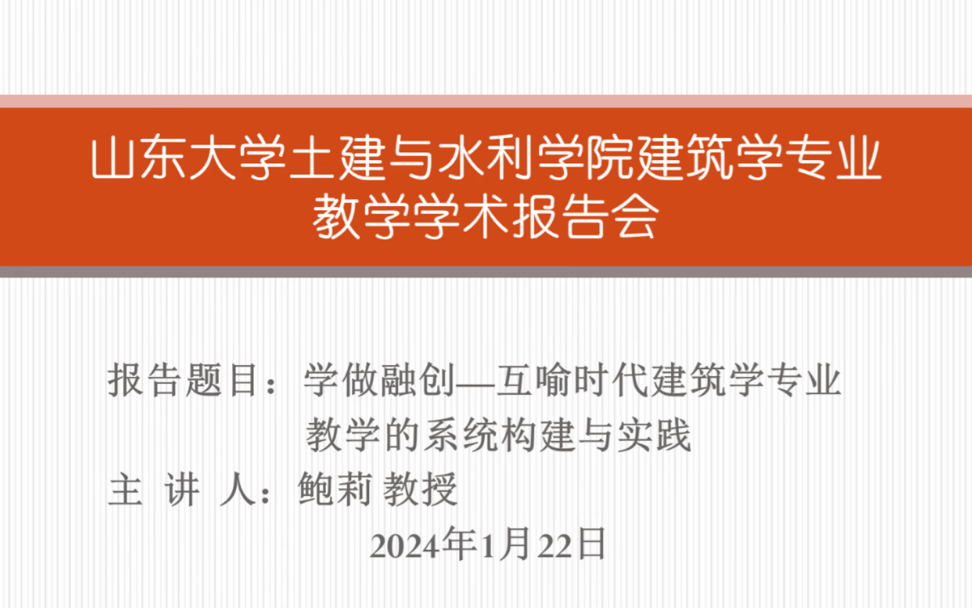 2024年1月22日,我院邀请教育部高等学校建筑类教学指导委员会建筑学分委会秘书长,东南大学建筑学院副院长鲍莉教授与建筑学系开展了教学学术研讨。bilibili