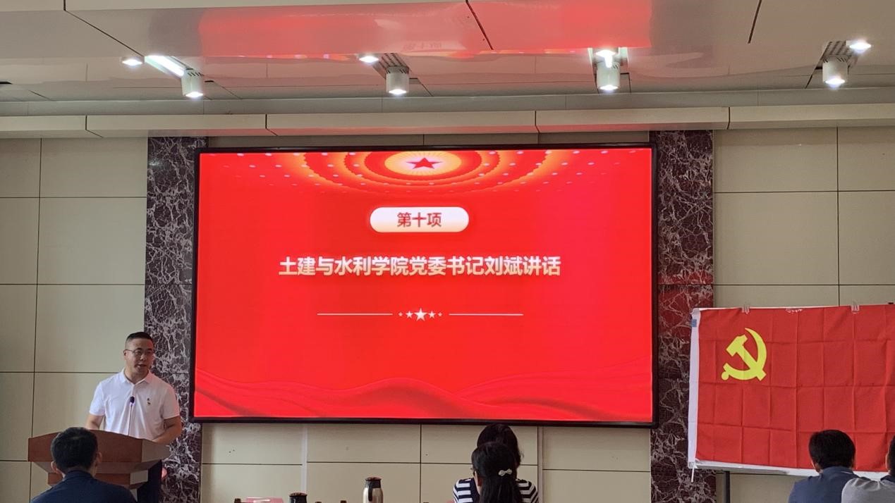 为庆祝中国共产党成立103周年,在深入开展党纪学习教育、学习宣传学校第十五次党代会精神之际,7月1日下午,土建与水利学院举办庆“七一”表彰暨党员代表座谈会。学院党委书记刘斌出席会议并讲话。