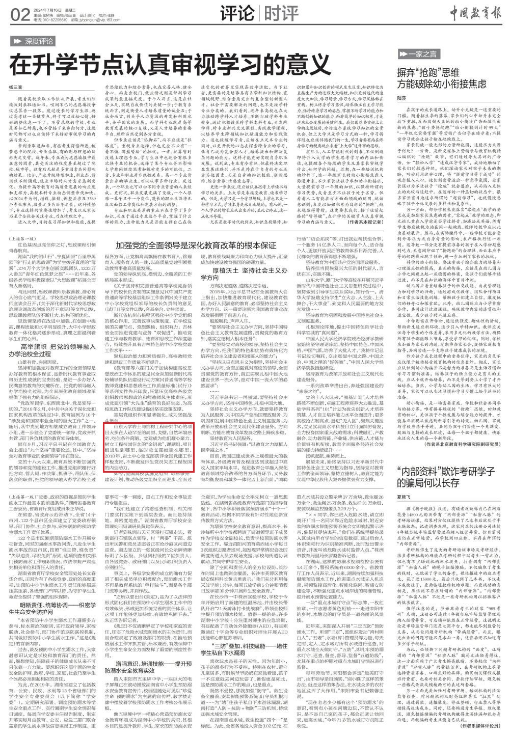 7月16日,《中国教育报》第1版、第2版发布文章《加强党的全面领导是深化教育改革的根本保障》,文章中报道bilibili