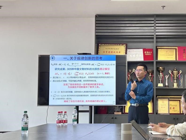 党睿围绕博物馆文物照明的关键问题,对规律、机理和理论三者进行概念辨析及关系讲解。基于自身的国家基金项目,他向大家介绍了博物馆文物照明技术瓶颈问题的研究方法、技术路线及科研成果。他强调,规律是自然现象的表述,机理是解释规律的形成原因,理论是机理研究的基本根据,在科研工作中应厘清三者之间的联系与区别,恰当运用以有效推进科研工作。