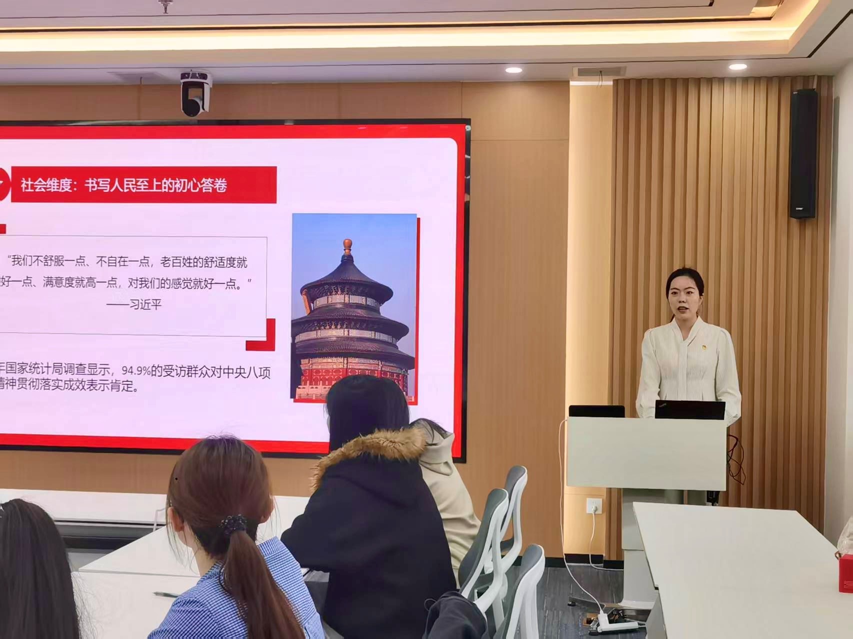 活动伊始,来自习近平新时代中国特色社会主义思想青年学习会党支部的党员代表围绕中央八项规定出台背景、核心要义和贯彻成效作主题宣讲,强调研究生党员要严守学术规范,抵制浮躁风气,养成严谨自律、务实清廉的作风。宣讲紧扣青年群体实际,引导研究生党员深刻领会“作风建设永远在路上”的政治要求,做到心有所畏、言有所戒、行有所止。