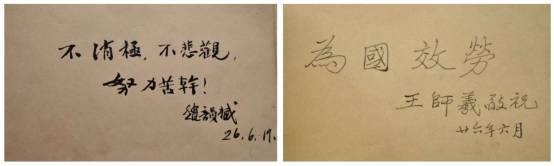 土木工程系讲师王师羲和赵韻臧的赠言分别为“为国效劳”和“不消极,不悲观,努力苦干”,这意味着国立bilibili