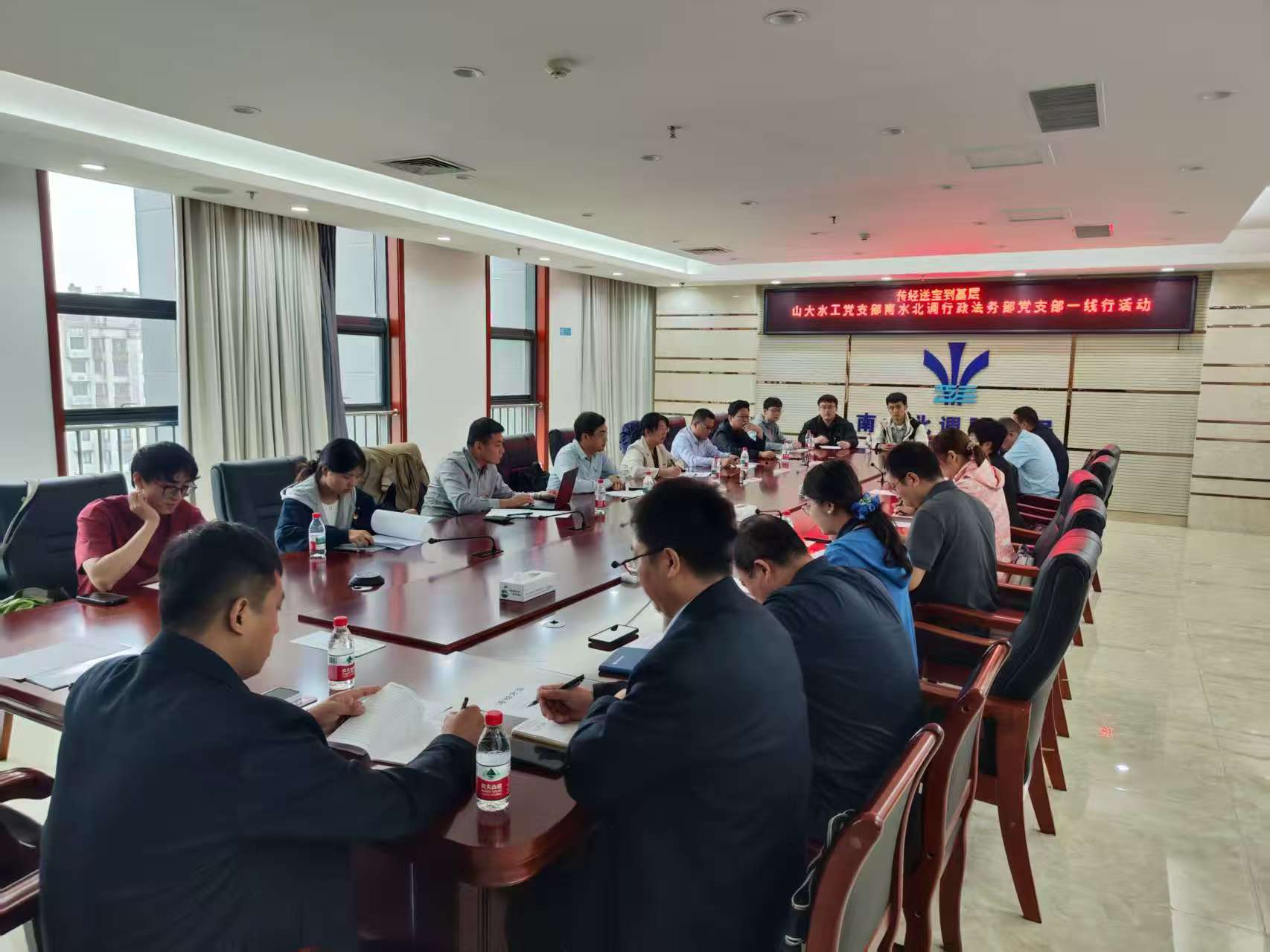 水工党支部前往邹平与南水北调东线山东干线有限责任公司行政法务部党支部、南水北调胶东局党支部联合开展“党建引领聚合力,校企联合共发展”主题党日活动。水工党支部书记张炯、水利系主任王冀鹏以及水利系党员教师和研究生代表,南水北调东线山东干线有限责任公司行政法务部副主任丁力宣及党员代表参加了活动。