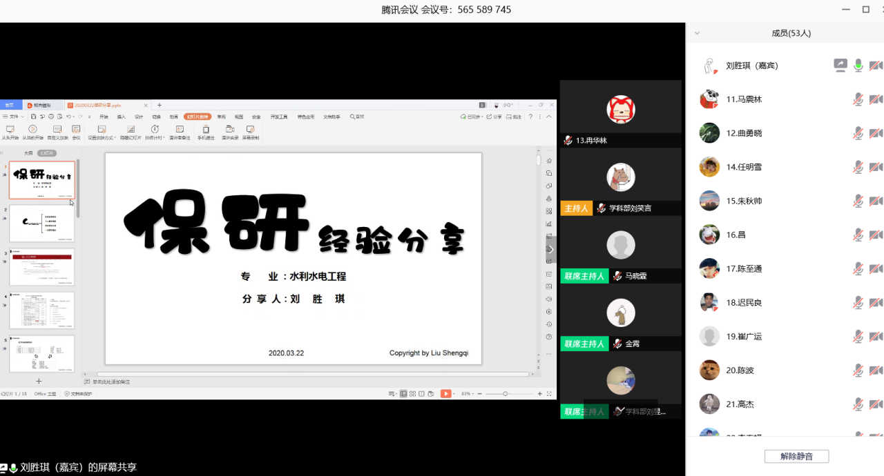 水利系保研经验分享会以线上形式如期举行。本次会议邀请了2016级水利水电工程班成绩第一的刘胜琪和成绩第二的郭甜甜作为嘉宾,进行保研经验的分享。