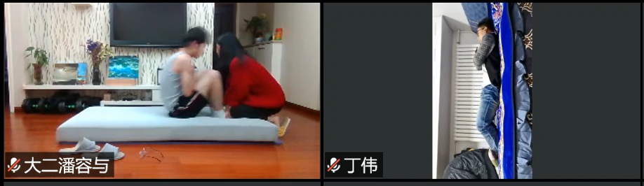 本次比赛采用线上方式进行,参赛人员分为男女两个组别,且男女各分为两组,一共四组进行线上比赛。八点钟,比赛正式开始,参赛人员进入各自的腾讯会议房间,通过视频的方式和其他人同台竞技,男生比赛时间为2分钟(120秒),女生比赛时间为1分半(90秒)。裁判员记录参赛者在规定时间内完成标准仰卧起坐动作的次数,计入个人成绩。赛后进行成绩排序,确定总名次。参赛者都事先了解了仰卧起坐动作规范,裁判也在比赛过程中进行评判纠正。