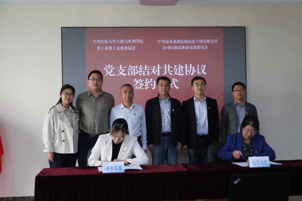 为深入学习贯彻习近平新时代中国特色社会主义思想,全面贯彻落实党的二十大精神,积极探索校企联合培养创新型、科技型、实践型人才模式,激发党建新活力,促进党建引领和业务工作深度融合,20231024日上午,bilibili 水工党支部与南水北调东线山东干线有限责任公司行政法务部党支部在南水北调山东干线公司总部开展bilibili 教学实践基地签约仪式暨校企党建支部结对共建活动。bilibili 副院长毛德强,南水北调山东干线公司党委副书记、总经理姜延国,党委委员、副总经理郭东升,水工党支部书记于翠松等水利系教师代表以及南水北调东线山东干线有限责任公司行政法务部副主任丁力宣等人参加了此次活动。