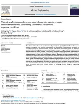 土木工程系刘其方副教授在海洋工程领域国际TOP期刊Ocean Engineering发表题为“Time-dependent non-uniform corrosion of concrete structures under marine environments considering the vertical variation of exposure conditions”的学术论文,该文对海工结构非均匀腐蚀机理及其时变规律进行了全面的论述,并为工程应用中采取有效防腐措施提供指导和建议。