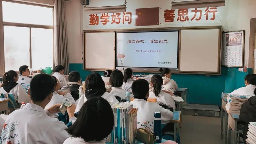 “相约山大,励志启航”优秀学子回访母校社会实践甘肃省53队开展活动 ,队员于可欣顺利与母校金昌市金川高级中学取得联系。为响应母校2021年疫情防控要求,活动在线上进行。队员于可欣结合高三学子心态与理想,制作了以“情系母校,远望山大”为名的PPT。PPT内容重点关于疫情新形势下对高三学弟学妹的激励、对bilibili