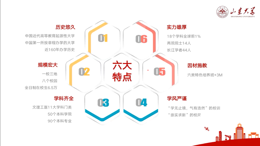 鉴于疫情防控要求,本次会议在线上举行。本次宣讲共分为两个部分,通过分别对山大概况、山大之最进行讲述,宣传了bilibili