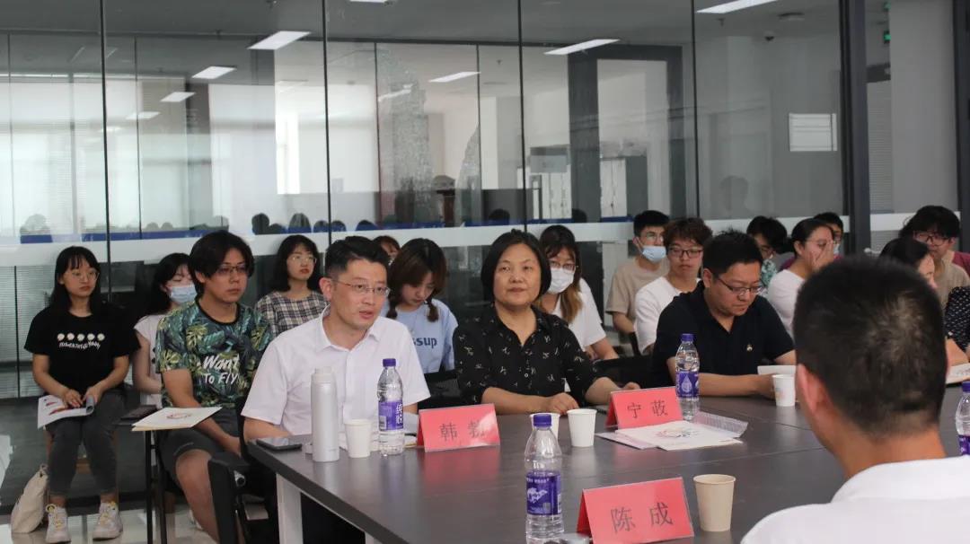 建筑学系主任宁荍、党支部书记王金岩,教师郭秋华、赵康、陈烨、王新,出席会议。会议由宁荍主持,北京龙源科建建筑设计有限公司山东分公司技术骨干、2018级建筑学系学生参加。