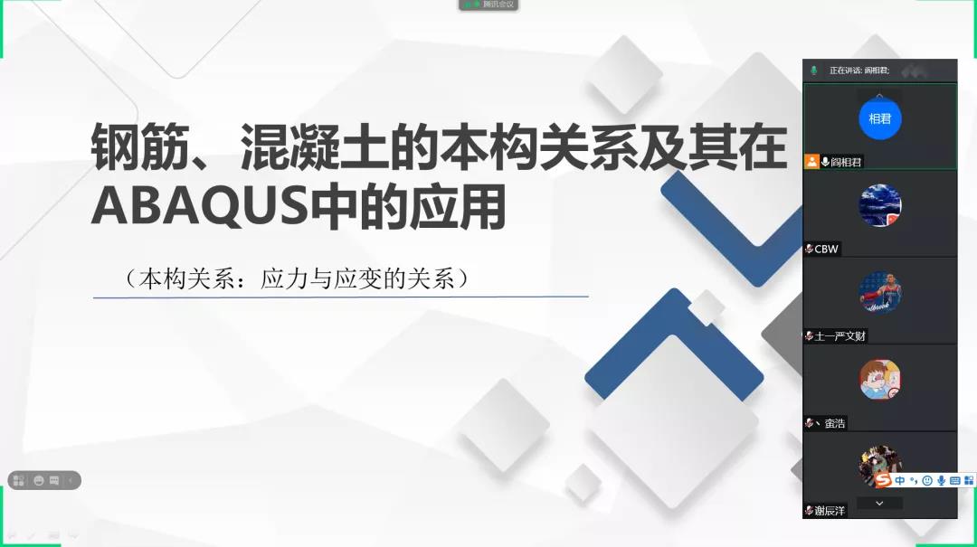 “免拆PVC底模的钢筋桁架楼承板研发与抗弯性能研究”创新创业社会实践团利用腾讯会议进行第三次团队会议分享ABAQUS资料库。本次会议由团队队员阎相君进行ABAQUS资料库分享以及钢筋、混凝土的本构关系在ABAQUS中的应用。