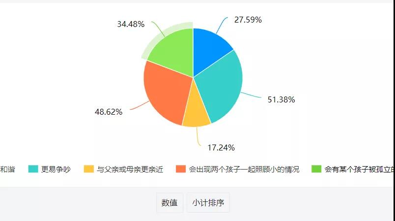 又比如关于三孩政策涉及的家长精力分配问题以及对于家庭关系、孩子心理的影响,绝大多数家长并未请过育儿嫂协助抚养孩子,而选择亲自抚养或交给亲戚长辈照顾,这反映大多数家庭更愿意自己带孩子,也可能与高昂的育儿嫂费用有关。受访者大多认为第三孩对于前两个孩子的心理影响主要体现在积极的方面,比如学会分享,变得更加体谅、谦让等等。至于对家庭关系的影响,由于诸多主客观因素,积极、消极面并存,主要的三大影响分别为:更易争吵、出现两个孩子照顾小的情况和某个孩子被孤立的现象。