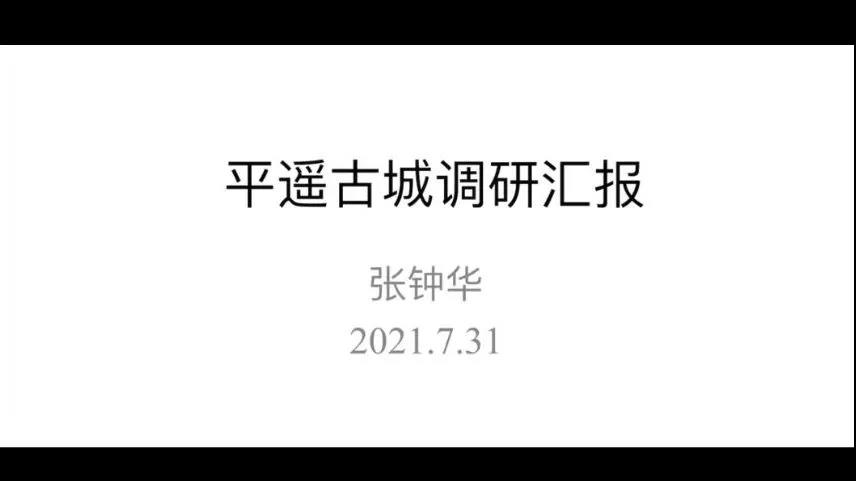 会议伊始,张钟华对平遥古城的初步调研成果进行了汇报。基于对平遥古城的实地调研,张钟华从平遥古城的原住民和游客对古建筑本身的影响,包括古建筑修缮、古建筑利用等方面进行了初步分析,提出了利用原有古建筑,加以修缮,并加强基础设施的建设,保证原住民的正常生活,并在原有古城的基础上加入了旅游所需的功能,既保护了古城,也使古城融入了人们的生活中。但通过走访,也了解到一些在古建筑保护,旅游开发中不当的做法,如在古建筑中的庭院建设健身器材,利用率低且与无法融入周围环境。