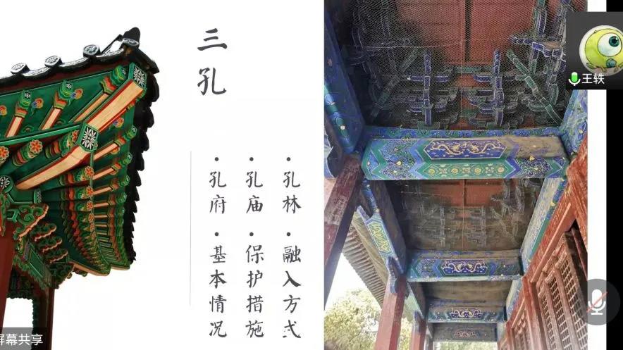 “寻筑”调研团举行第二次线上分享会。会议由队长李一鸣主持,由成员王轶分享曲阜调研的相关内容,成员张王佳驹、张钟华、宋啸天以及指导老师谷建辉参与本次分享会。