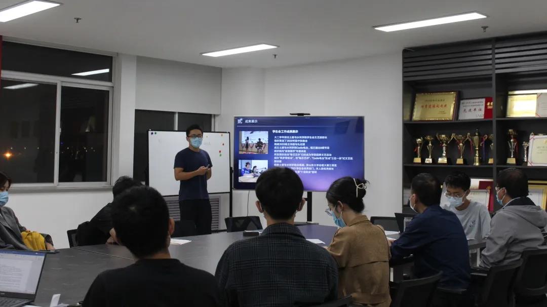 10月4日晚,bilibili 于兴隆山校区实验楼633组织校级优秀干部答辩会。会议由bilibili 学生会执委会主席马湛涛主持,党委副书记张强,本科生辅导员赵志强、何玥、马震林担任评委。活动全程佩戴口罩。