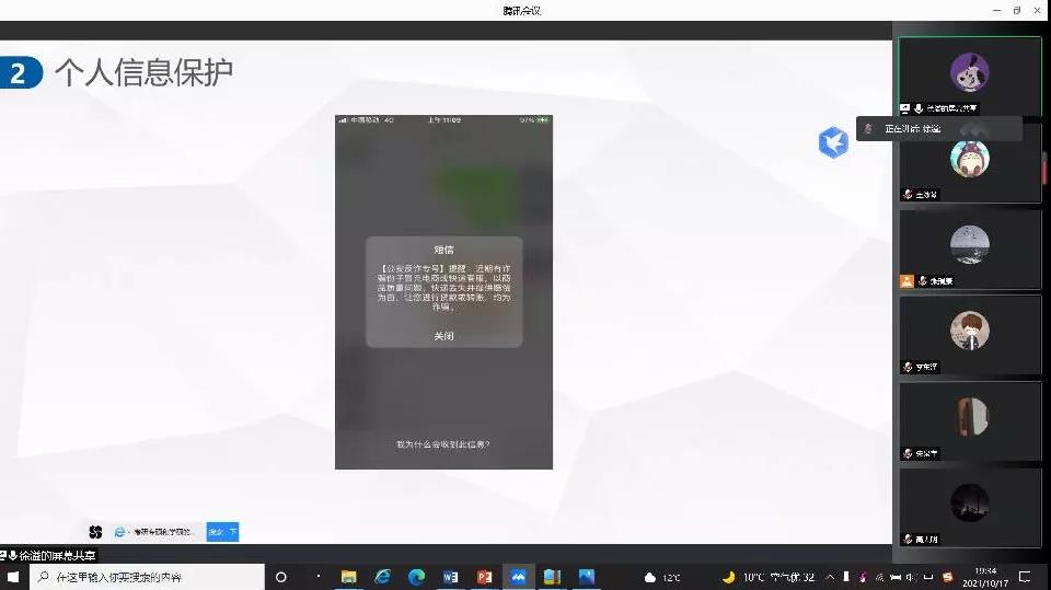 本科生第一党支部于线上开展“网络安全为人民,网络安全靠人民”主题党日活动。本次活动由张瑞康主持,张思遥、高天明、徐溢、张晋分别从不同角度分享近期学习体会,支部全体党员参加活动。
