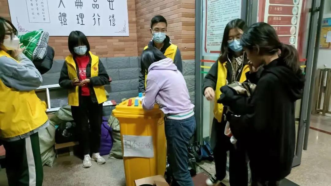 的志愿者在所负责两栋学生公寓共收集20袋旧衣,八学院共收集40余袋旧衣。经过不断推进宣传,越来越多的同学参与进来,捐赠的衣服逐渐堆成小山。
