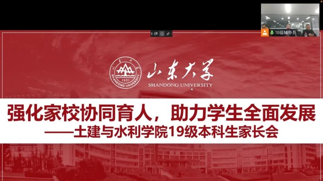 于线上组织召开2019级本科生家长会。本次会议由副院长张强勇,党委副书记张强出席,2019级辅导员赵志强主持,2019级本科生家长参加。