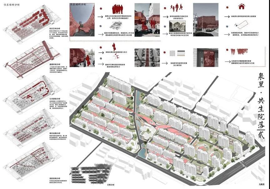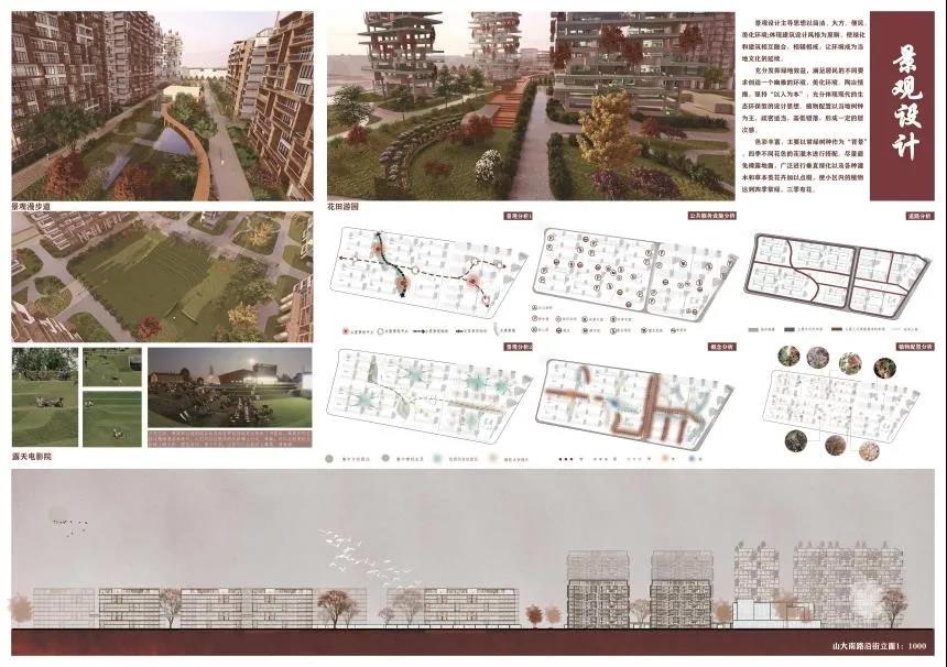 牛雨雨的作品以场地原有的泄洪沟为景观基础,结合济南泉城形象,利用水景打造“泉里”生活,延续济南传统的空间院落及街巷形态,结合景观小品、景观节点及组团内的设施塑造“开放中围合”的济南特色的住区空间形态。