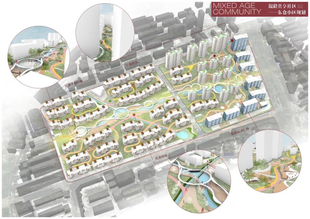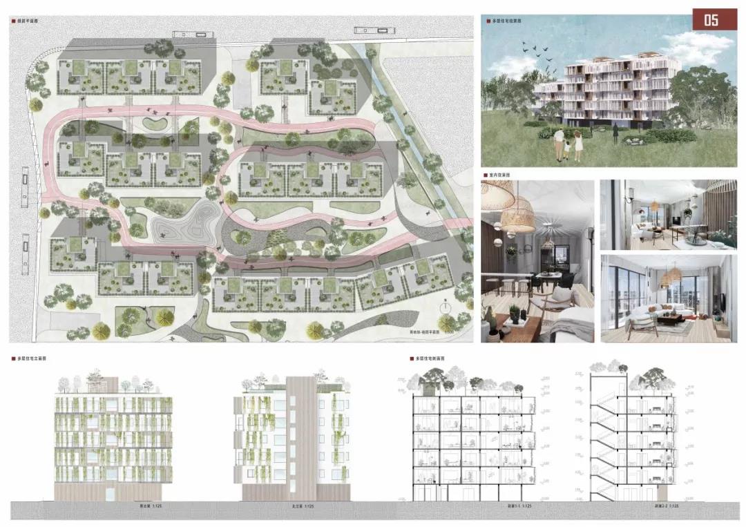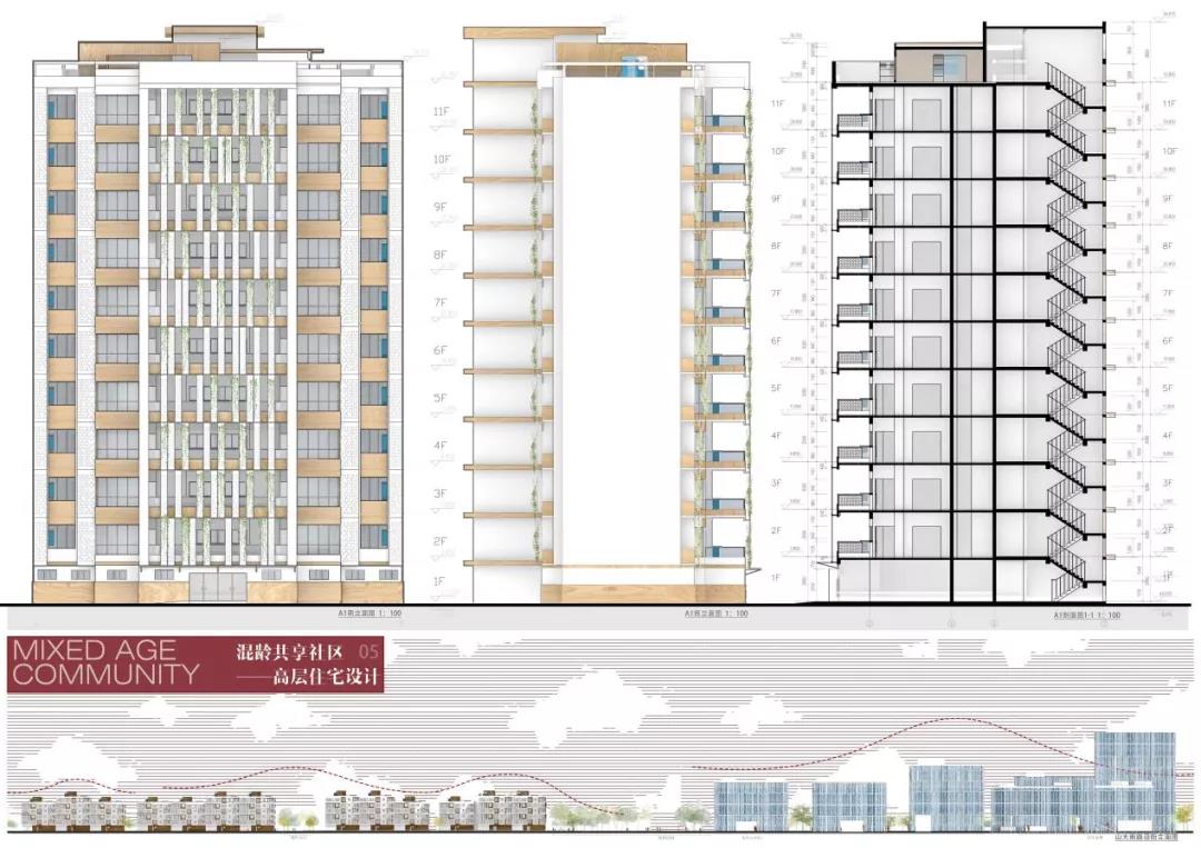 杨辰雨和张雨晴的作品关注度在于:在虚拟社交高度发达,真实的邻里社交活力减弱的当代社会,人们居住在同一屋檐下却鲜少有真实而丰富的交流活动,个体之间缺乏关心与理解。重塑多层级、有活力的邻里社交圈,构建灵活共融、绿色健康的混龄共享社区成为本次住区与住宅设计所关心的重点问题。