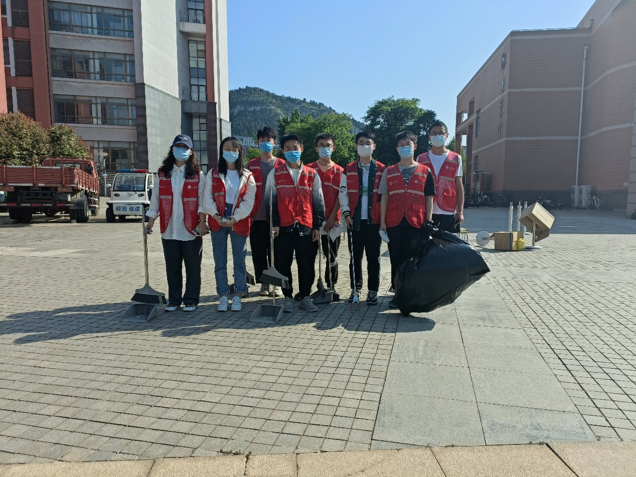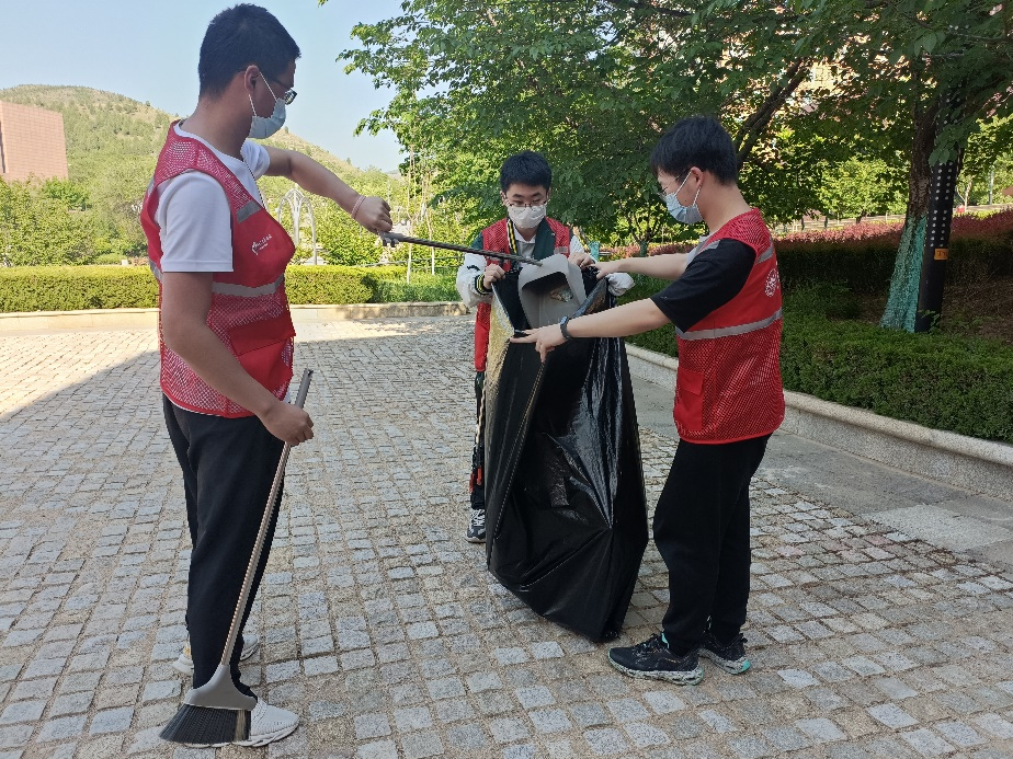 志愿者们携带抹布、扫帚、垃圾拾取器等清洁工具,主要针对一多广场草坪以及水池附近进行清理。在志愿者们细心地清扫下,被风吹进草坪、吹进水池的垃圾都无处可藏,各卫生死角都得到深度的清理。纵使烈日炎炎,志愿者们仍确保卫生区域全部清洁完毕之后才选择离开,不仅洁净了校园环境,更是在劳动中收获了乐趣。