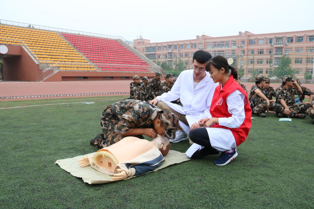 首先,培训人员向在场新生介绍了心肺复苏技术和其他急救操作的专业知识,并多次强调了心肺复苏的重要性。之后,培训人员为同学们细致地讲解了心肺复苏的主要步骤,培训人员称,心肺复苏技术是用于呼吸和心跳突然停止、意识丧失患者的一种现场急救方法,在操作之前,首先判断患者是否还有意识,之后再进行胸外心脏按压、打通气管、人工呼吸等操作。理论介绍过后,专业医生利用人体模型进行了细致规范的现场操作,一边演示一边对胸外按压部位、按压深度、按压频率等细节进行具体说明。为了让每个同学熟练掌握这项急救技能,演示结束后,工作人员为现场同学分发了人工呼吸防护面膜,并指导新生一一进行心肺复苏操作,及时指出并纠正操作中出现的错误。在全方位的模拟体验中,每个新生都掌握了“心肺复苏”的步骤要领。实践结束后,医护人员又对操作中出现的问题进行了强调说明,并对此次技能培训做了总结。