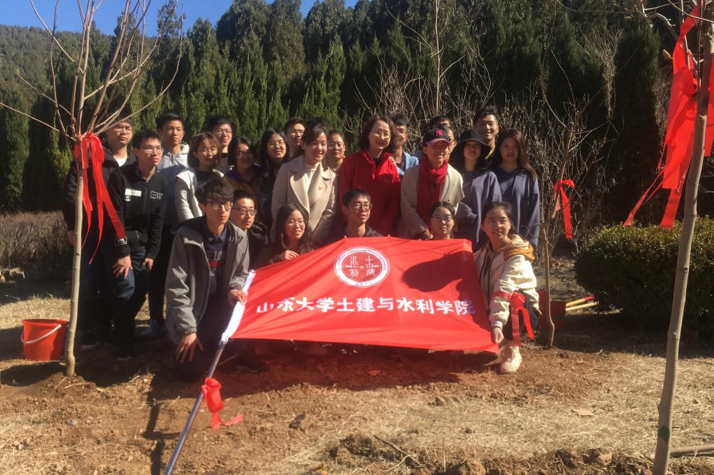 接受了志愿服务证书并与各单位负责人一同合影。专业人员向在场各单位讲解了植树活动的主要流程以及植树过程中需要注意的问题,通过专业技巧的运用确保树苗成活率。植树过程中,志愿者们自主分为六个小组,根据指定标签领取树苗,结合专业人员的指导有条不紊地进行挖坑、栽植、回填、覆土等一系列工作。同学们互帮互助、通力合作,一同填土、浇水的同时不断为同学们加油鼓劲,充分发挥了团队合作精神。