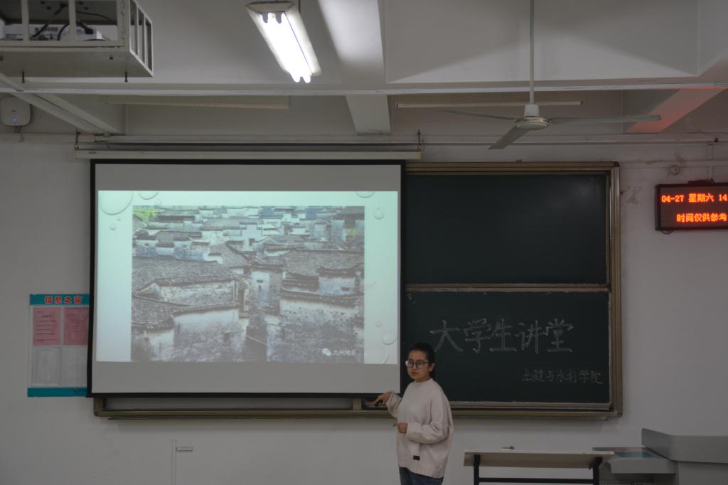 来自18级土木二班的柯良瑾围绕着战争对中国古代诗词的重要影响这一主题,从诗词的起源与特点出发展开论述,分析了诗词与人类精神世界的密切联系,详细探讨了诗人的个人经历对其创作的影响。她以辛弃疾、李清照等人为例,将战争对诗人创作风格的影响进行分类,并分别进行了阐述。柯良瑾将诗词、历史、作者情感联系起来,以号召同学们传颂经典,品味历史。18级建筑二班的王璨则将目光聚焦到了历史遗产在当代的保护上。王璨从中国古建筑的现状谈起,列举了古建筑被破坏的原因和保护过程中面临的问题,也由此对中国古建筑的保护手段与保护方式展开思考。王璨还着眼于古建筑对当代的影响的角度,提出了加大古建筑保护宣传力度、增强公众古建筑保护意识的建议,以实现政府与群众对古建筑的共同保护,尽可能将古建筑最好的面貌存留于世。
