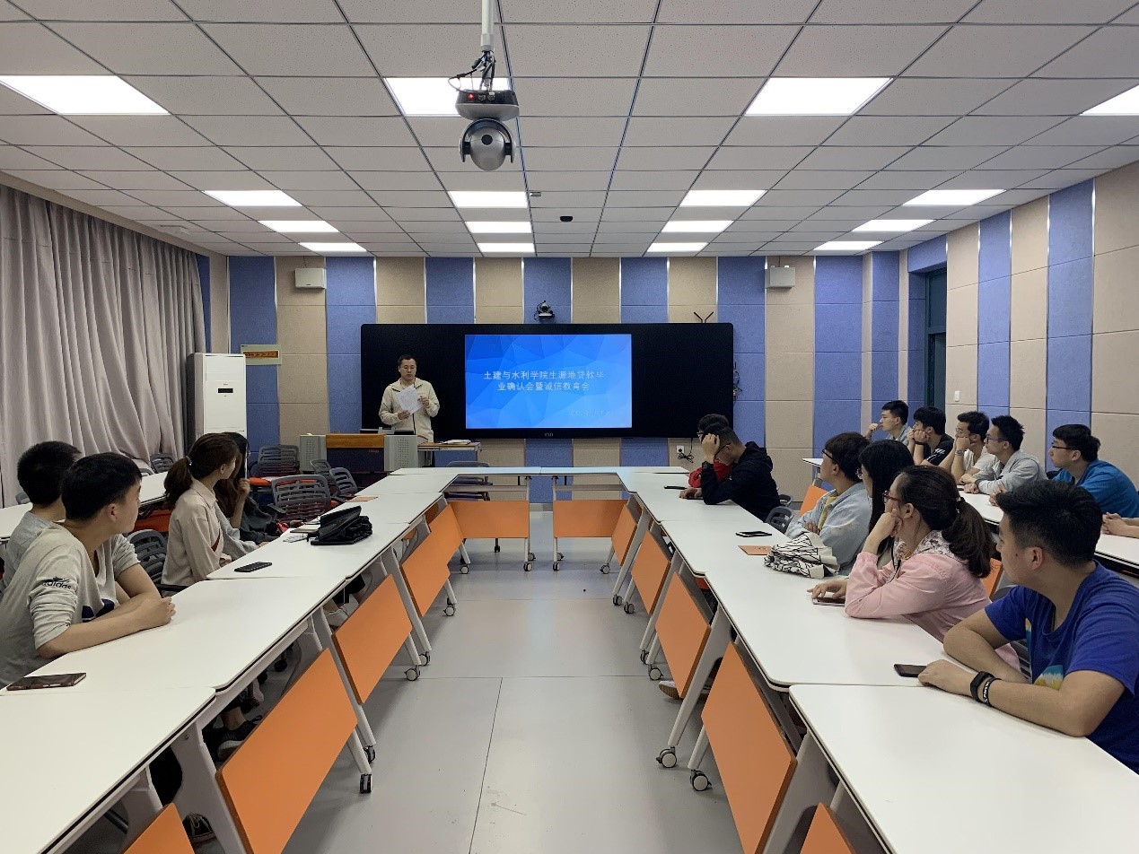 在学生活动中心召开生源地贷款毕业确认会暨诚信教育会,会议由毕业班辅导员杨浩主持,学院勤贷助理及申请生源地贷款的毕业生参加了本次会议。