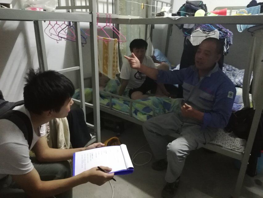 本次调研活动中,民工热情地与团队沟通交流,也向团队普及了诸如理赔、“死亡名额”、生活等方面的情况。藉此,团队对建筑行业有了更为立体的认识,也对底层民工的辛苦程度有了新的认识。(图/罗煜旻  文/殷建伟)