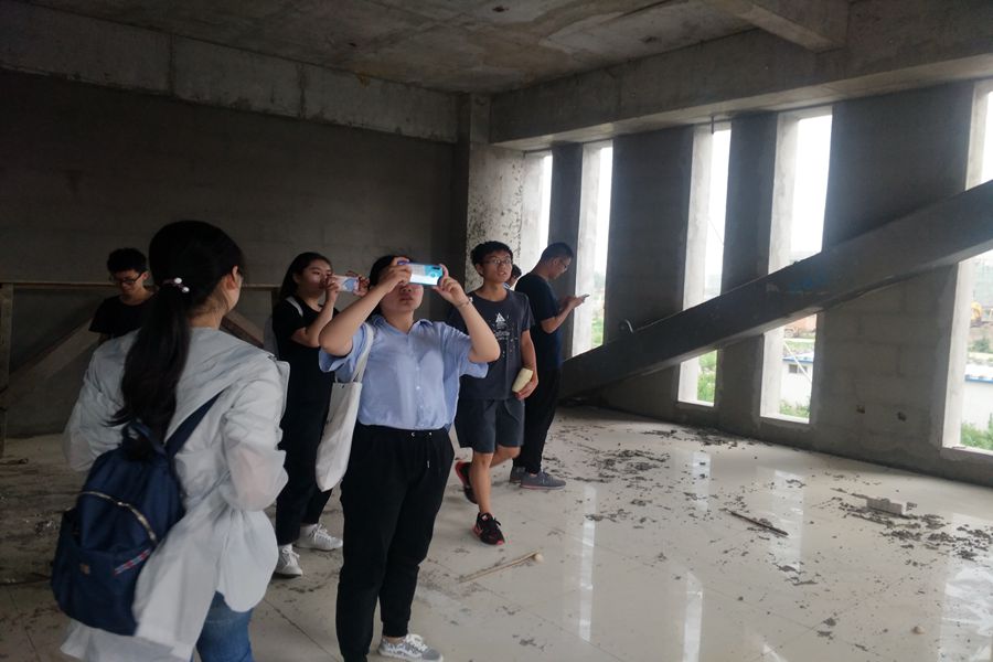 12日上午9时,团队7人到达莒县二中新校区施工现场,再次与负责讲解的黄工接洽,黄工带领大家进入在建的办公楼,在办公楼走廊的一侧墙体上,可以看见已封装完成的粘滞阻尼器,黄工结合手机图片和现场情况,向同学介绍道粘滞阻尼器是应用粘性介质和阻尼器结构部件的相互作用产生阻尼力的原理设计、制作的,相当于给建筑装上了安全气囊,一般是水平轴向布置,以达到减震效果,这与防屈曲支撑杆的原理则大不相同,通过对比,团队成员发现了粘滞阻尼器在体积质量等方面较防屈曲支撑杆更小,黄工对此予以肯定,表示粘滞阻尼器主要应用于跨度不是很大的结构中,占用空间小,饰面装修方面也确实比之前的防屈曲支承更为方便,同时粘滞阻尼器的一大优势是其可以多次使用,而防屈曲支承杆则只能一次使用。针对队员们提出的两种类型的减震装置的地震响应问题和减震效度问题,黄工则表示减震装置一旦安装上,只有等地震来临才能检验到其是否发挥了作用,但在此之前,相关技术研发部门会经过多次重复试验,通过试验参数设置一定的安全系数,所以是有保障的。