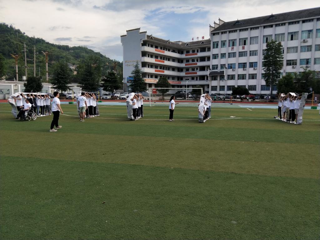 蒲公英小桔灯一起共同推动偏远乡村的教育发展和文化保护建设,这也映衬了小桔灯团队“萤萤之光,流辉耿耿”的口号,希望可以通过志愿者故事和行动带给同学们些思考,帮助学生找寻人生定位和未来目标。”接着,由志愿者主持开营分组仪式,分组以抽取卡片随机分组的形式开展,分组结束,各组志愿者带领本组成员进行团队文化建设,包括队名、队徽、队歌等,每组成员积极参加,有条不紊的进行团队建设。团队“破冰活动”紧锣密鼓的进行着,“串名字、各位好汉请抱拳、风水轮流传“等活动,镇远中学的弟弟妹妹们积极参加活动,达到“破冰”、增强团队凝聚力的效果。