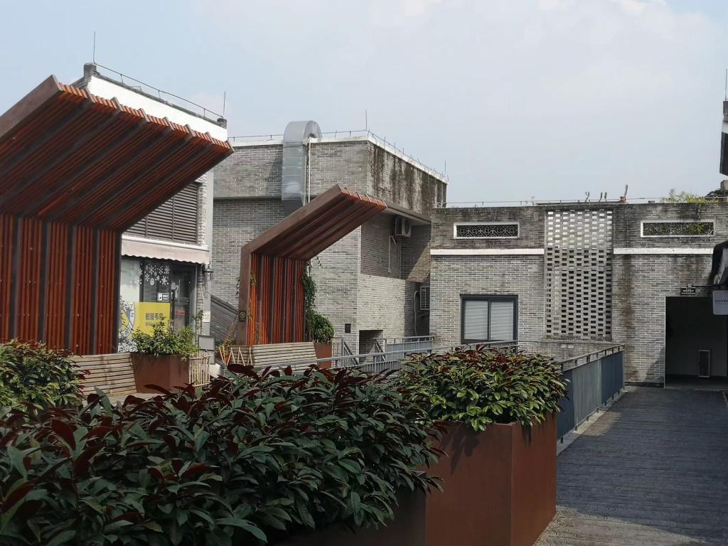 团队在对永庆坊进行实地的调研过程中,恰逢恩宁路的二期改造项目正在施工,切身体会过脚手架下的环境,脚手架上的叮叮当当声后,更加深刻的体会到了这项旧改项目中,对于建筑施工的细节把控有多么的重要。这些在永庆坊的一期工程中我们也有了更加深刻的体验,新生的玻璃幕墙与老旧的红砖青砖房屋彼此和谐的共生在一起,一侧是钢筋混凝土的民宿商店,一侧是红砖石墙的老街区,永庆坊的新旧碰撞恰到好处,但也让团队成功的感受到了永庆坊这条老街散发出的新的生命力。