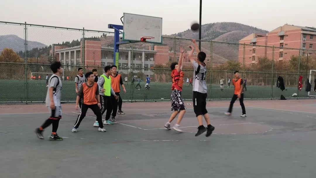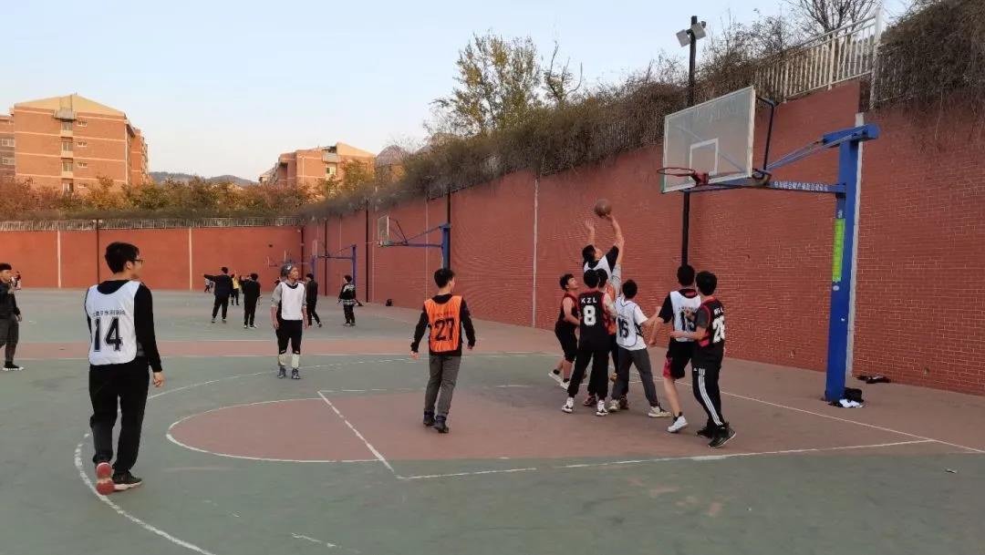 “土建杯”篮球赛半决赛在山下篮球场进行。闯入四强的2018级土木一班、2019级土木一班与水利合班、2017、2018级水利合班与2018级土木二班争夺决赛名额。