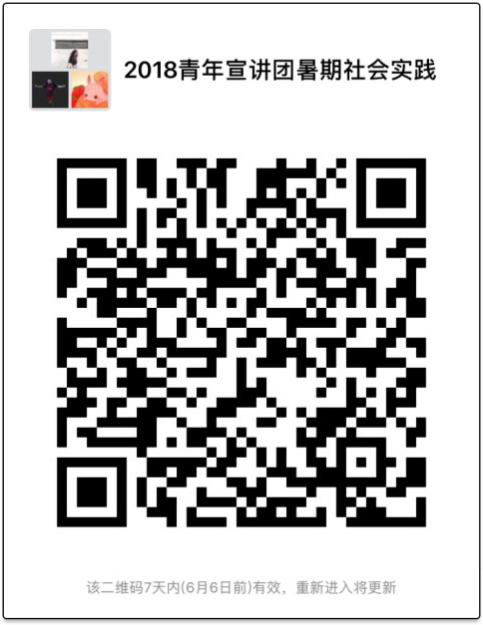4. 请各实践团队负责人尽快加入微信群“2018青年宣讲团暑期社会实践”,二维码如下,届时相关通知将会在群内发布。