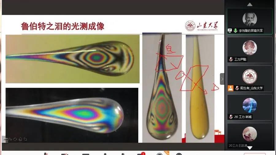 随后,李浩隆向大家分享了学习经验。因12月4日新生研讨课要求工程力学班全体学生将以1~2人为单位,选择感兴趣的力学问题进行分享展示。李浩隆同学就即将到来的新生研讨课的展示形式,以“鲁伯特之泪”和“克拉尼平板”两个研究为例向大家分享。他的分享使用视频、图片等,结合深入浅出的讲解,为同学们提供了很好的参考,有利于同学们打开思路、进一步完善分享内容。