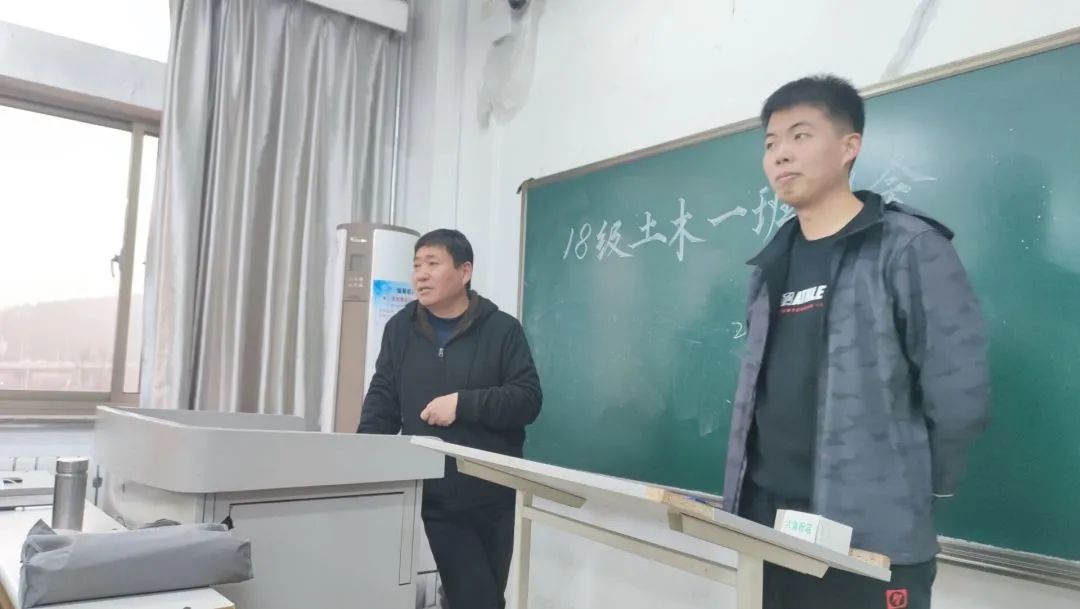 2018级土木一班于教学群楼1303教室召开班会。活动由班主任王彦明主持,2018级导员许伟强以及土木一班全体成员参加。