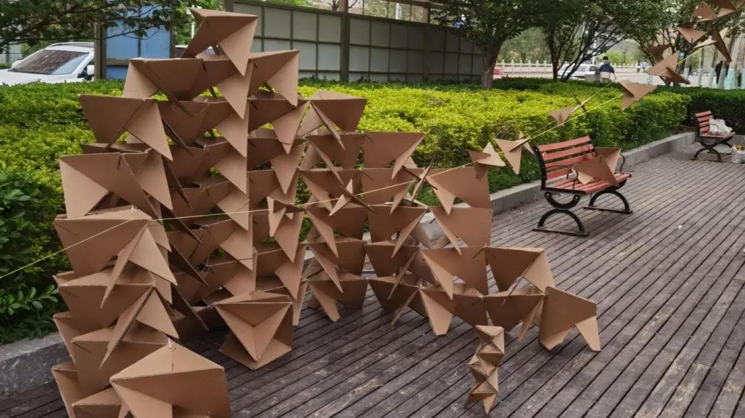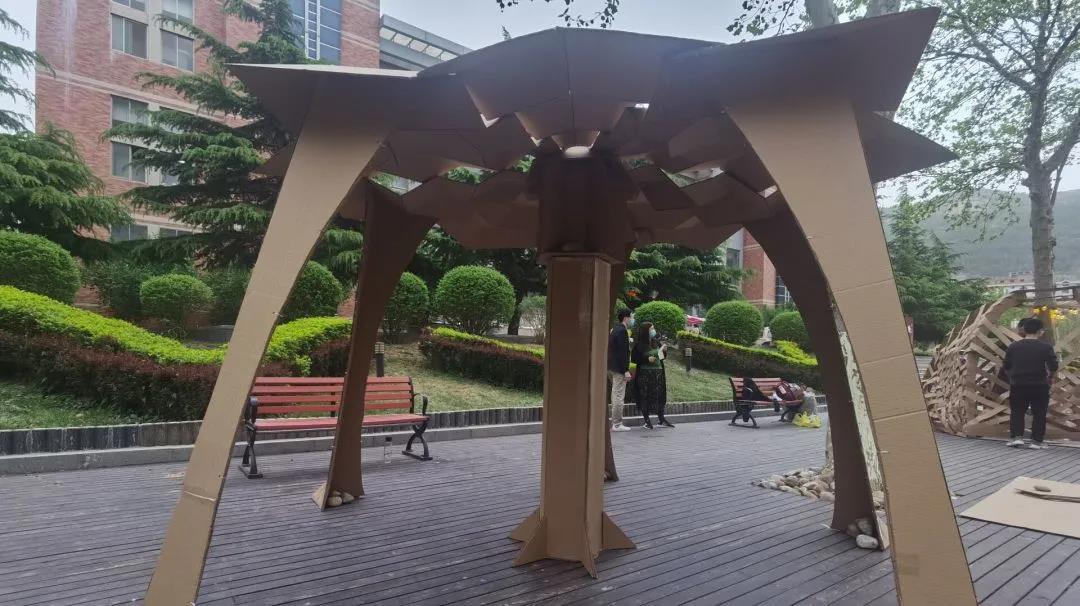 2020级建筑一、二班于欣园西门前举行瓦楞纸搭建活动。活动由20级建筑系举办,两个建筑班自由组队,每一组都带来了精彩的瓦楞纸搭建作品。