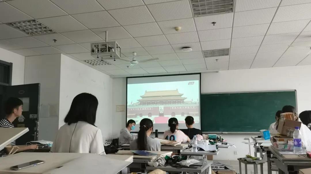 2020级建筑一班于实验楼集中收看庆祝中国共产党成立100周年大会。团支书戎雅惠组织全体同学观看大会直播,共同见证这一伟大时刻。