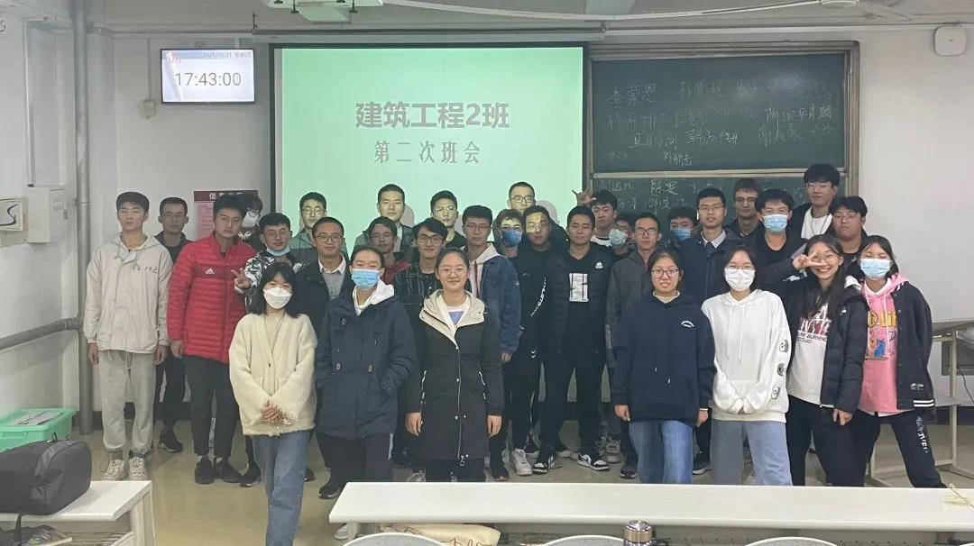 2021级建筑工程2班于兴隆山校区教学群楼召开了第二次班会。班会由班长曲梦妍主持,2班全体同学全体参加。