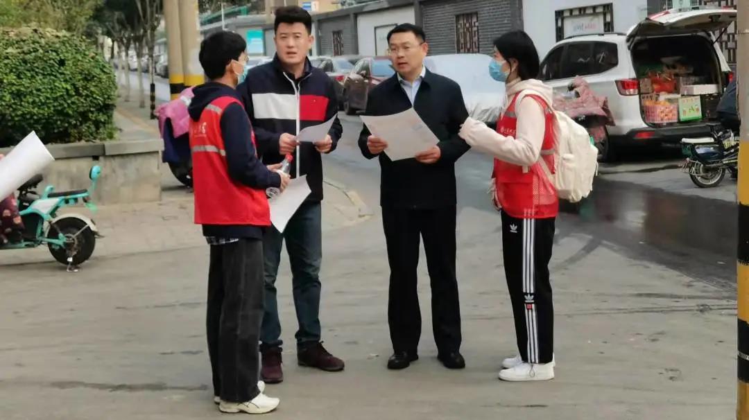 第一部分工作完成后,社区工作人员将十一名同学分成两队,由社区负责人带到社区各单元楼前进行创建文明城市海报的张贴及宣传工作。除此之外,志愿者们还向老人们宣传反诈骗相关知识,帮助老人下载反诈骗中心APP。