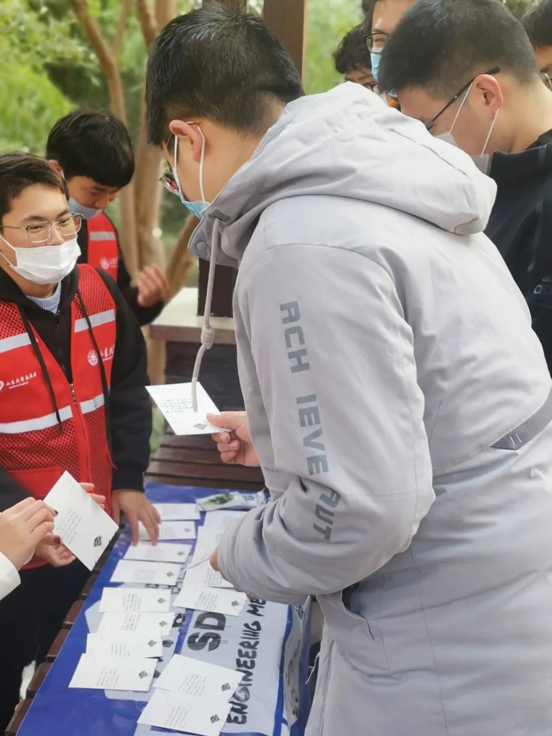 在英雄山风景区中,志愿者们开设学习山东革命历史的展区,向路过的游客们展示介绍党史资料小卡片,并热情地向他们详细叙述革命的具体细节,赠予参与者红色小纪念品。在听过志愿者的介绍后,游客们更加了解了革命历史,明白了革命精神在当今社会的重要性。志愿者们希望人们能够更多地了解党史,学习革命精神。如果当今社会每个人都能铭记党在峥嵘岁月中的艰苦奋斗,“人们有信仰,国家有力量”就能更好地实现。